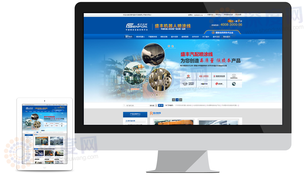 东莞市盛丰机械喷涂设备营销型网站在电脑上和平板电脑上的展示效果